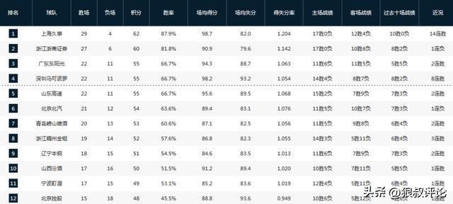本场比赛过后,广厦的战绩为27胜6负,排在积分榜第2位。